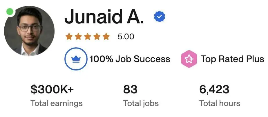 Top Rated Plus on Upwork • 100% Job Success • 80+ Projects Completed